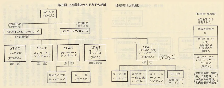 解体後のベルシステム(関秀夫『AT&Tの地球戦略: 急展開する世界情報通信産業』、p.45-6)